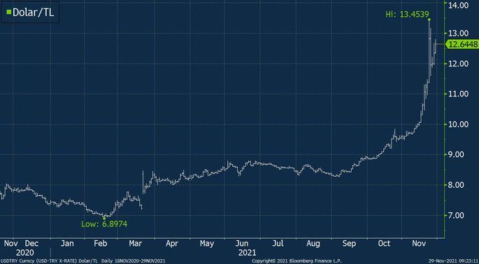 Dolar/TL , geçen hafta 13,45 seviyesine kadar tırmanarak rekor kırdıktan sonra haftanın kalanını 12 seviyesi civarında geçirmişti.